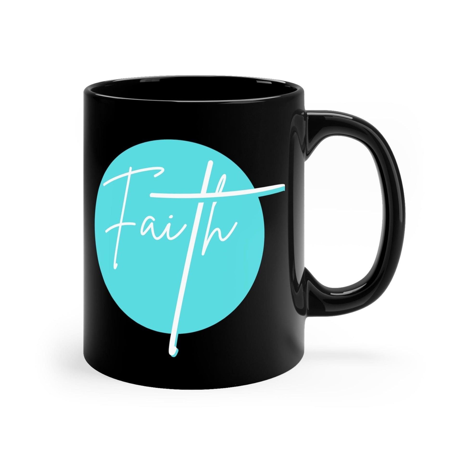 Black Ceramic Mug - 11oz, Faith - Christian Affirmation - Cyan Blue And White