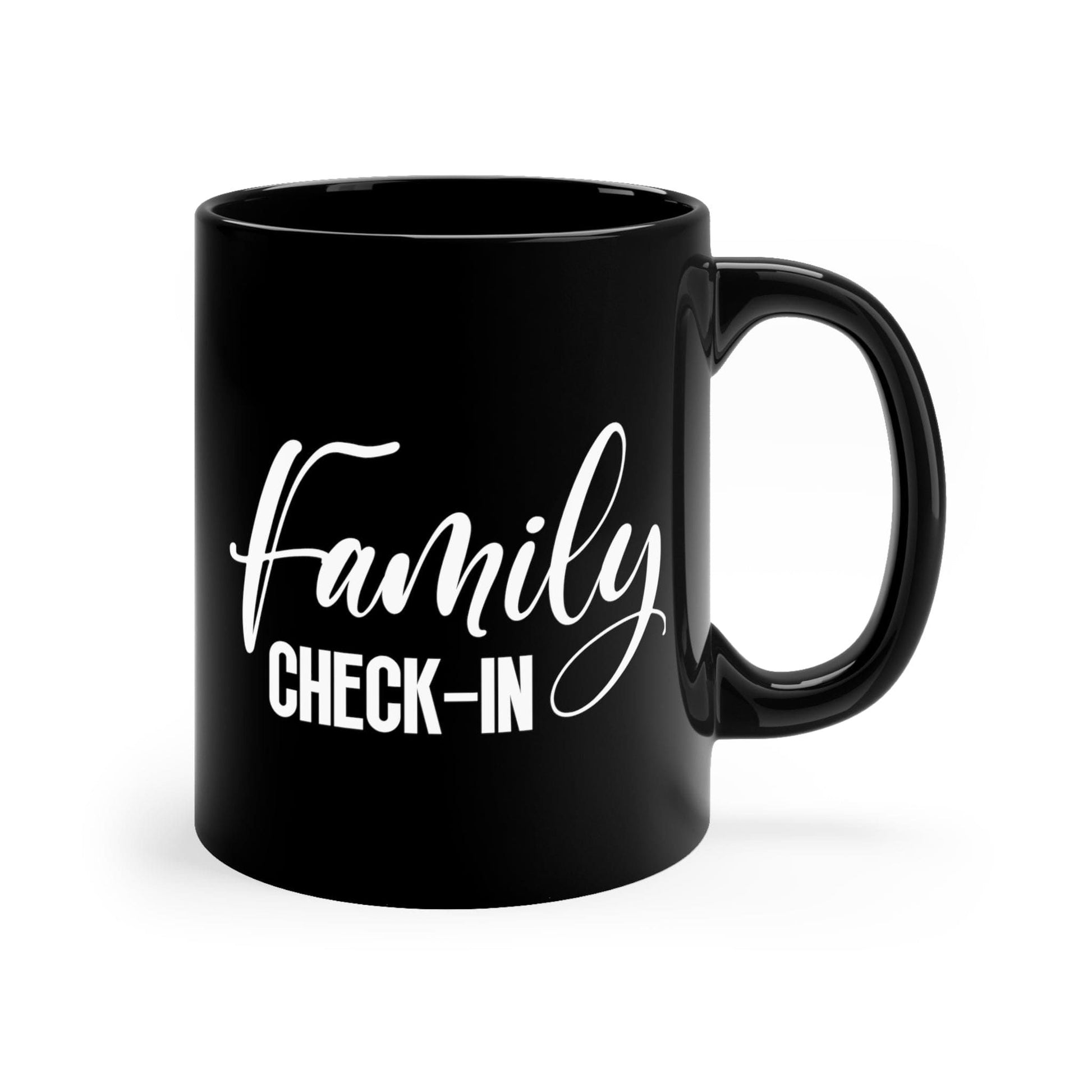 Black Ceramic Mug - 11oz, Family Check-in Illustration
