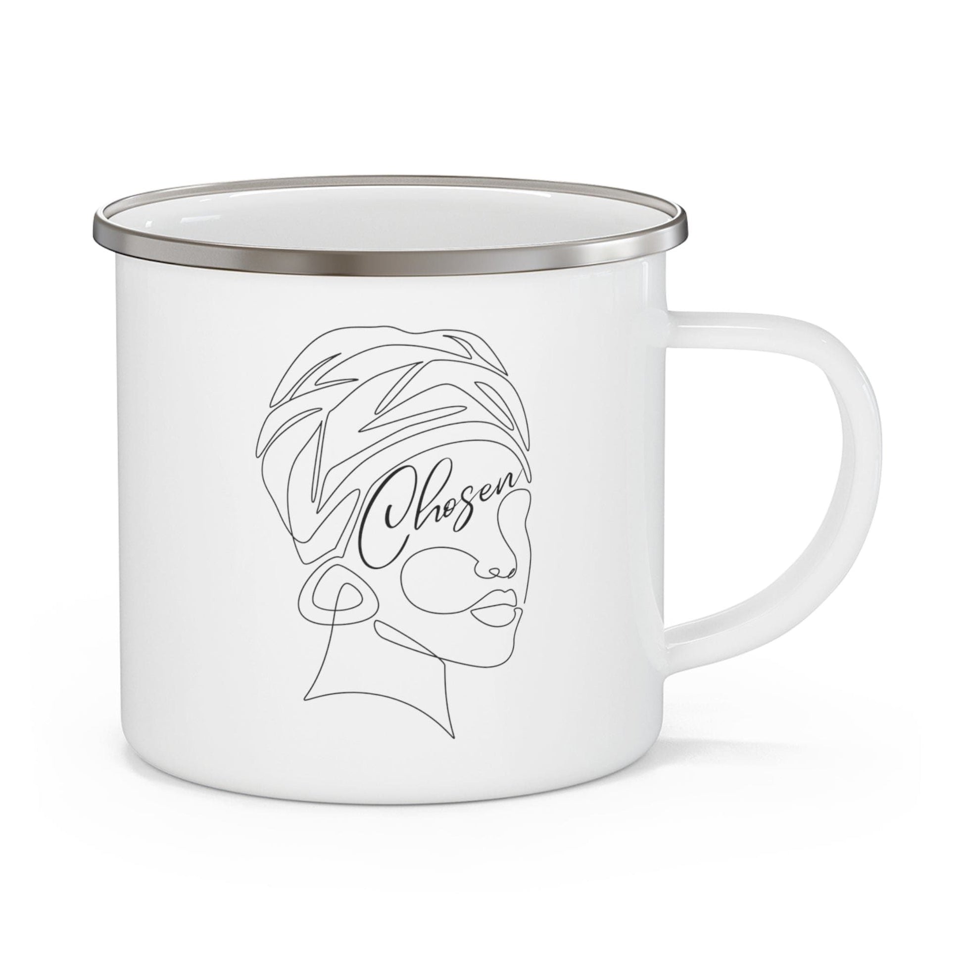 Enamel Camping Mug, Say It Soul, "chosen" Black Woman Line Art, Self Worth Line Art