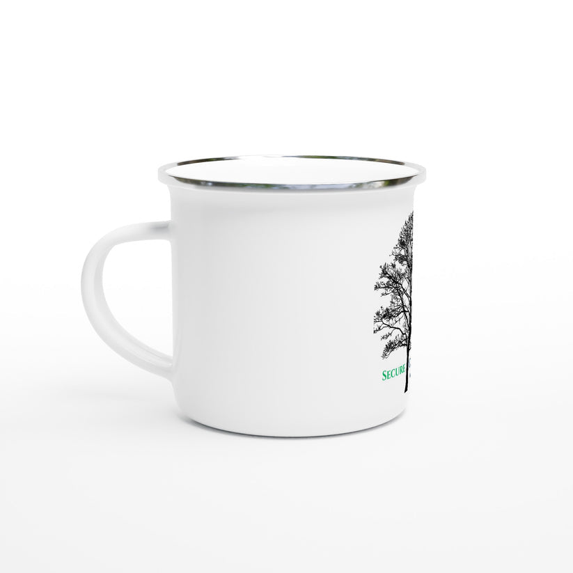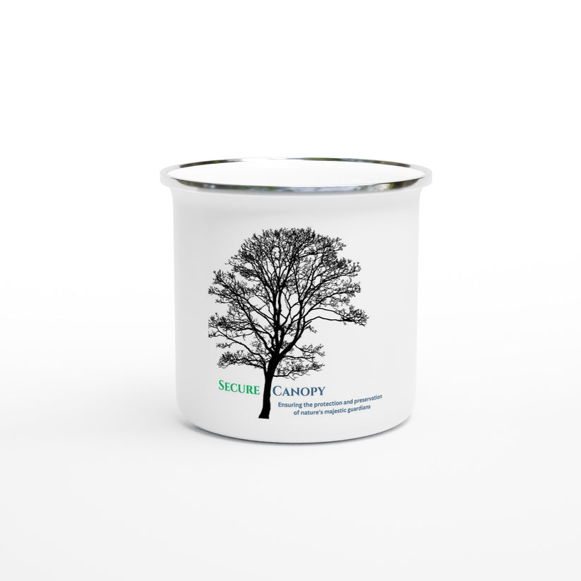 Embrace the spirit of environmental conservation with our Secure Canopy Enamel Mug. This rugged yet stylish mug features a striking black and white silhouette of a majestic tree, symbolizing the importance of protecting our planet's natural guardians. Perfect for camping, hiking, or everyday use, this lightweight enamel mug is built to withstand outdoor adventures.