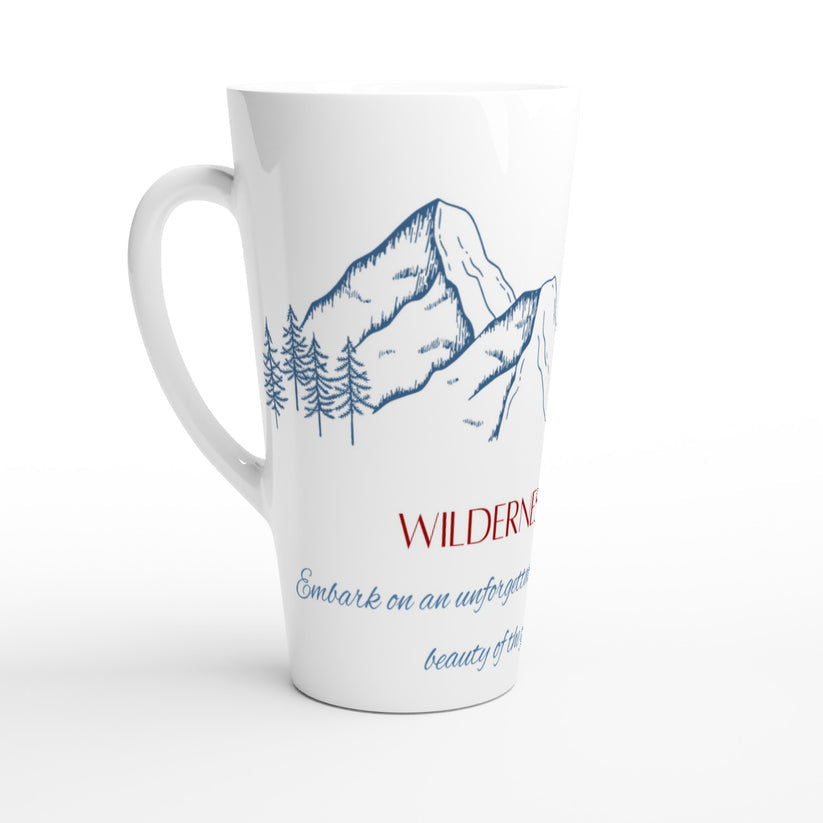Escape to the mountains with our Wilderness Awaits Latte Mug. This stunning mug features a breathtaking hand-drawn illustration of a majestic mountain range, perfect for those who crave adventure and appreciate the beauty of nature. The crisp white ceramic provides a vibrant canvas for the design, while the large size is ideal for indulging in your favorite hot beverage.