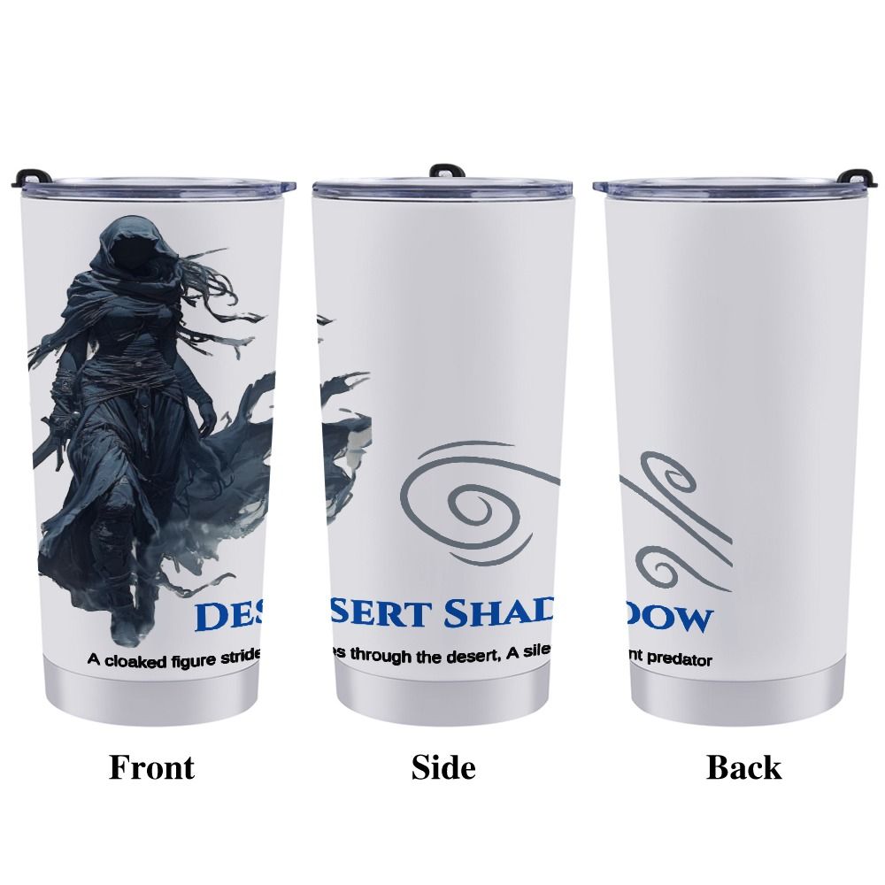 Elevate your coffee experience with the Desert Shadow Stainless Steel Travel Coffee Mug, featuring an exclusive art design that embodies the mystery and elegance of desert wanderers. This mug combines artistic flair with practical functionality, making it perfect for daily use or travel.