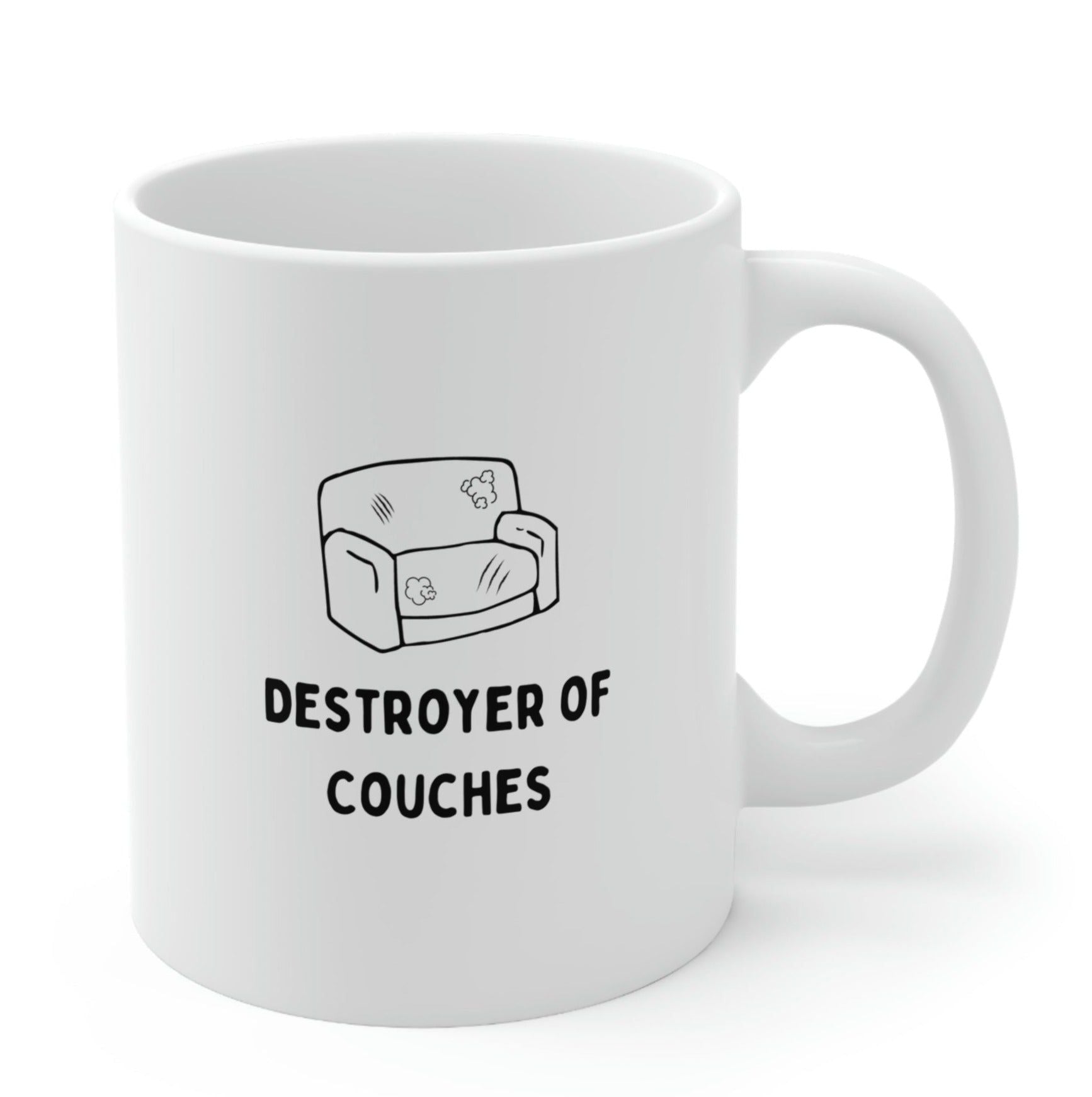 The Cat Destroyer Of Couches Coffee Tea Mug - the perfect companion for your morning cup of coffee, tea or hot chocolate. Crafted from high-quality, durable ceramic, this classic white mug is designed to withstand daily use and is sure to become your go-to mug for all your favorite hot beverages. With its sleek and stylish design, this mug is perfect for both home and office use.�